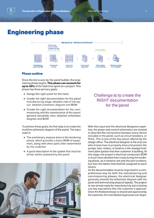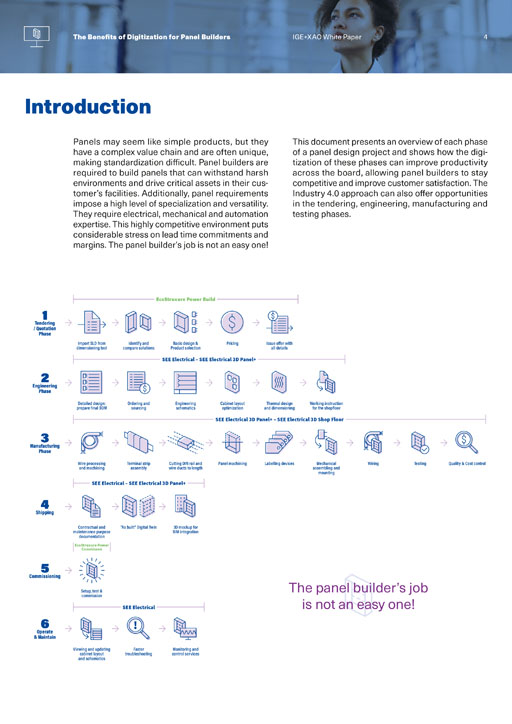 Mise en page d’un « white paper » sur la conception numérique de panneaux électriques grâce aux produits IGE.